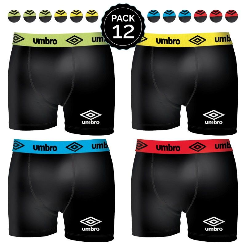 Set 12 Boxers UMBRO Negro(cintura verde/amarilla/azul/roja) - 95% algodón 5% elastano - Talla XXL