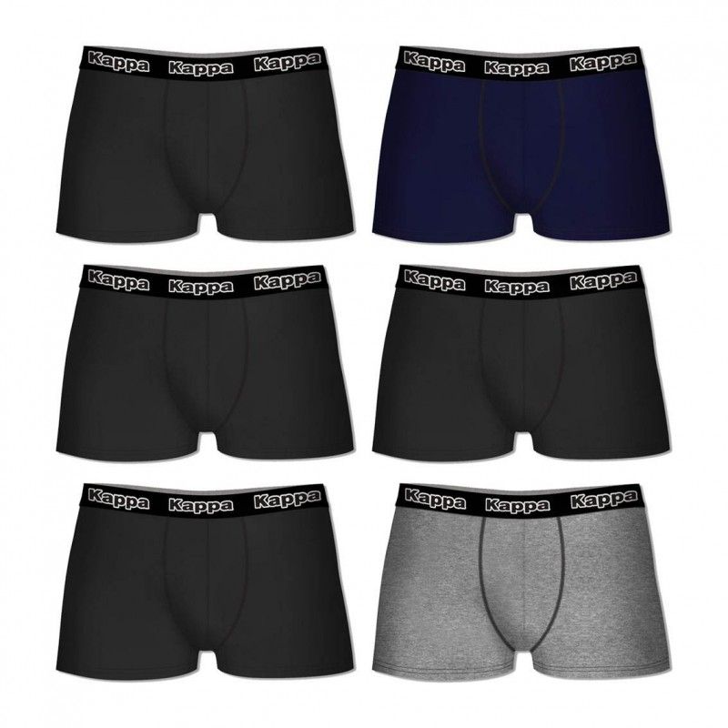 Set 6 boxer Kappa Negro(x4)/Marino(1)/Gris(1) - 95% algodón - 5% elastano