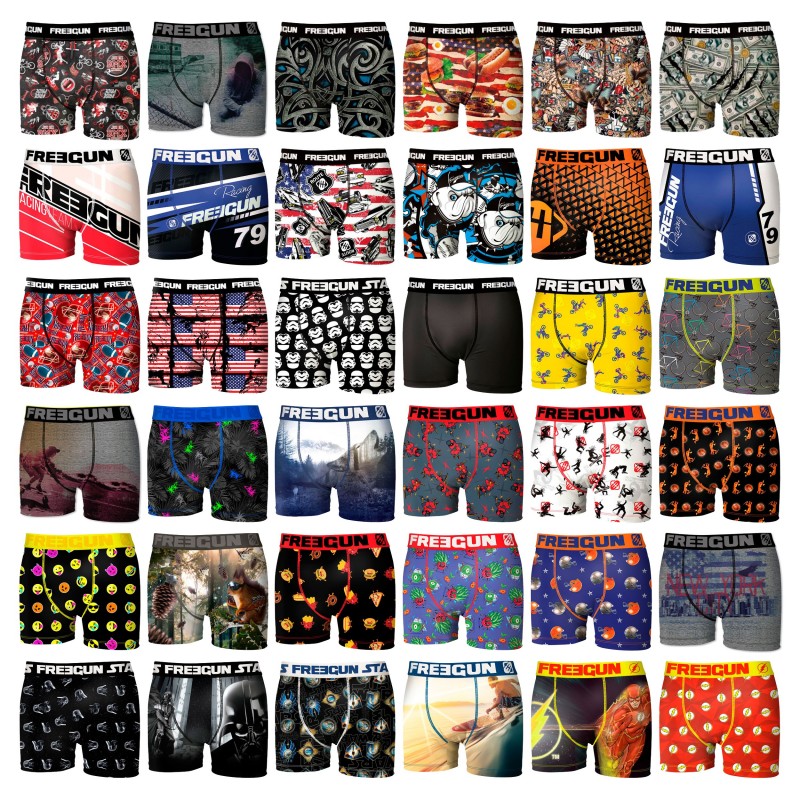 Set surtido de 50 prendas interiores (boxers/slips) de nuestras mejores marcas, en modelos surtidos. Aprovecha la ocasión de hacerte con un buen fondo de armario con los distintos boxers y slips de nuestras marcas (Kappa/Freegun/KTM/Crazy Boxer/Von Dutch... y muchas más) en sus distintas colecciones y diseños (Dragon Ball Z, Pokemon, Spiderman, Batman, Nature...) Los diseños impresos son por sublimación: los colores se funden con el tejido, por lo que, siguiendo las instrucciones de lavado, no se desteñirán. Cómodos y confortables, con costuras planas, y forro de algodón en la zona genital para mayor comodidad. La suavidad del algodón y la firmeza del tejido sintético, además de su ajustabilidad por el elastano, con cinturas anchas con logotipos, te darán ese plus que buscas...