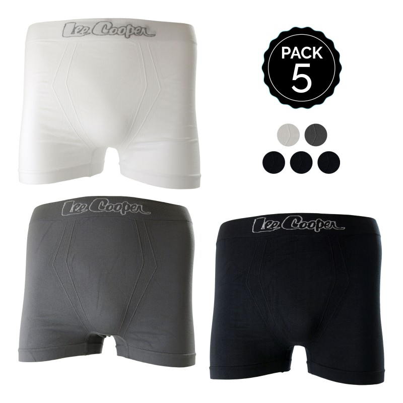 Set 5 Boxers LEE COOPER colores negro-blanco-gris Talla L - 92% poliamida - 8% elastano