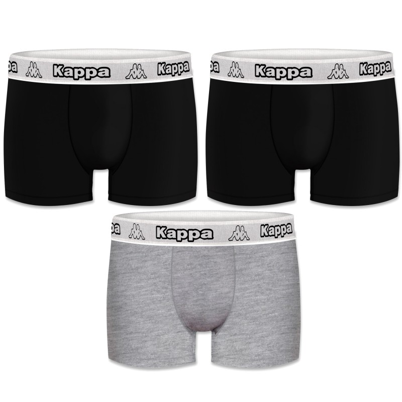 Boxers KAPPA - set 3 piezas. Fabricados en 95% algodón 5% elastano Color con cintura en gris Boxers fabricados en algodón: hipoalergénico, libre de químicos, transpirabilidad y durabilidad. El elastano le proporciona la ajustabilidad necesaria. Máxima protección y un comodidad óptima, con la suavidad del algodón. Con costuras planas para un perfecto confort. Cinturas elásticas con logo impreso. Dispone de forro 100% algodón. Regular fitting. Lavar a 30 grados, con agua - No utilizar lejía - No secar en secadora - Plancha templada