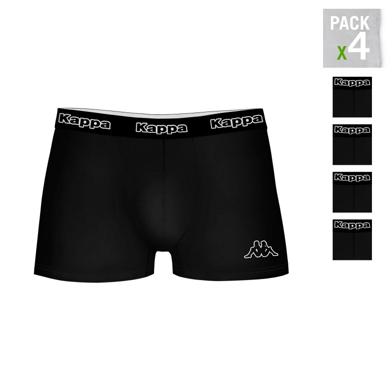 Boxers KAPPA - 4 piezas. Fabricados en 95% algodón 5% elastano Color 2negro Boxers fabricados en algodón: hipoalergénico, libre de químicos, transpirabilidad y durabilidad. El elastano le proporciona la ajustabilidad necesaria. Máxima protección y un comodidad óptima, con la suavidad del algodón. Con costuras planas para un perfecto confort. Cinturas elásticas con logo impreso. Dispone de forro 100% algodón. Regular fitting. Lavar a 30 grados, con agua - No utilizar lejía - No secar en secadora - Plancha templada -