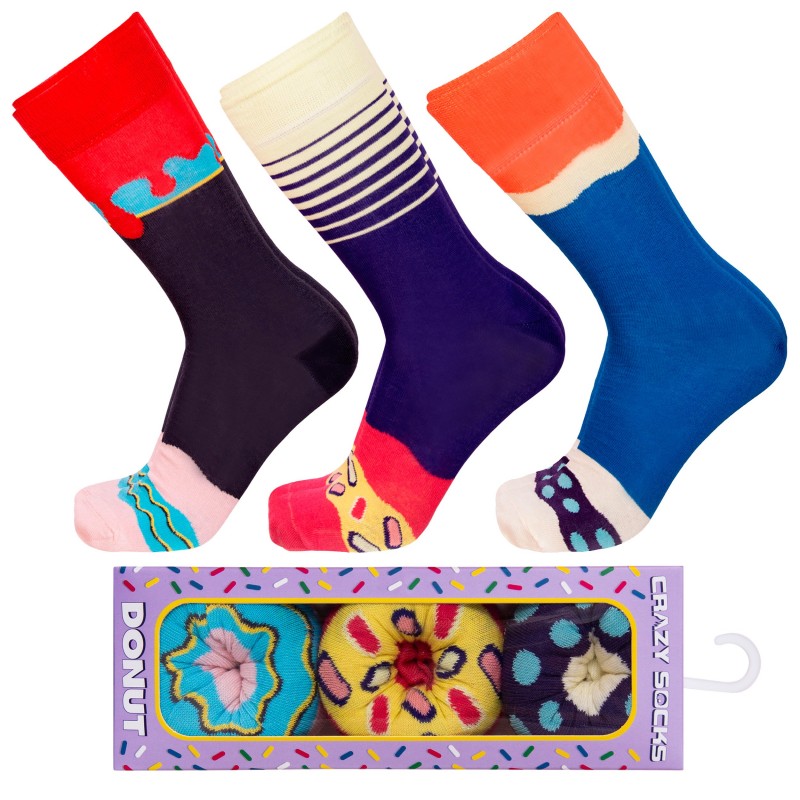 Talla: 43/46 3pares Calcetines de vestir en caja - ideal para regalo - Algodón BIO- Crazy Socks - divertidos y originales