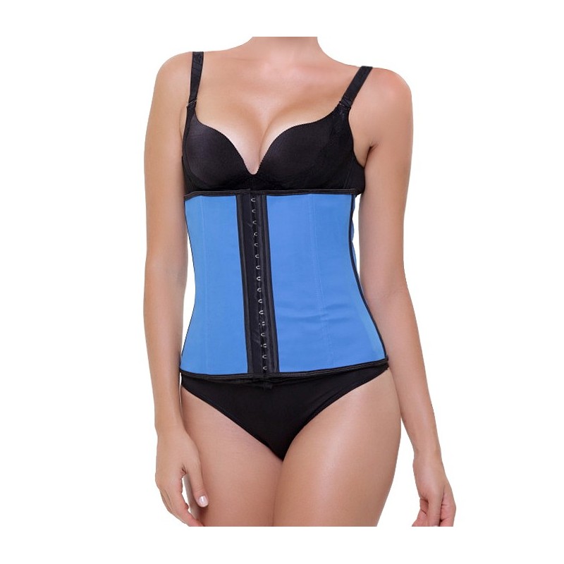Producto: Corset Color: Azul Varillas: Metálicas de acero inox trenzado Cierre trasero: Sin cierre Cierre delantero: Ballenas metálicas de acero inoxidable en la parte frontal Con corchetes Cuello: Sin escote Copa: Sin copa Aros: Sin aros Tipo de corte: Corto (Hasta la cadera) Tirantes: Sin tirantes Tela: Lisa Detalles: Otros como se ve en la foto Total piezas: 1 Composición: Forro: Algodón 96% Spandex 4% Exterior: Látex 100% Etiquetaje: Etiqueta estandar Embalaje: Bolsa plástico transparente