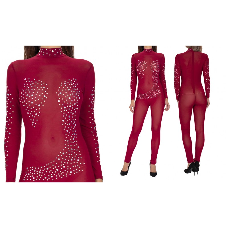 Producto: Mono Color: Rojo Cierre trasero: Cremallera Cierre delantero: Sin cierres Cuello: Sin escote Tipo de corte: Sin corte( Hasta los pies) Tirantes: Sin tirantes Tela: Lisa Detalles: Pedrería Strass Accesorios: Tanga Total piezas: 1 Composición: 95% polyester - 5% spandex Etiquetaje: Etiqueta estandar Embalaje: Bolsa plástico transparente