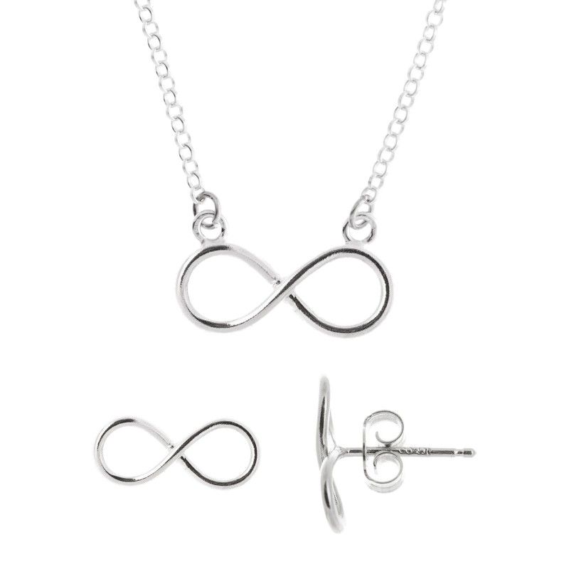 CONJUNTO GARGANTILLA Y PENDIENTES INFINITO COLOR PLATA
