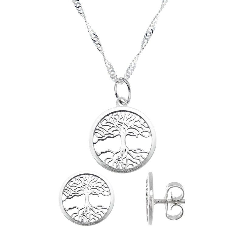 CONJUNTO COLGANTE CON CADENA Y PENDIENTES ARBOL DE LA VIDA. COLOR PLATA