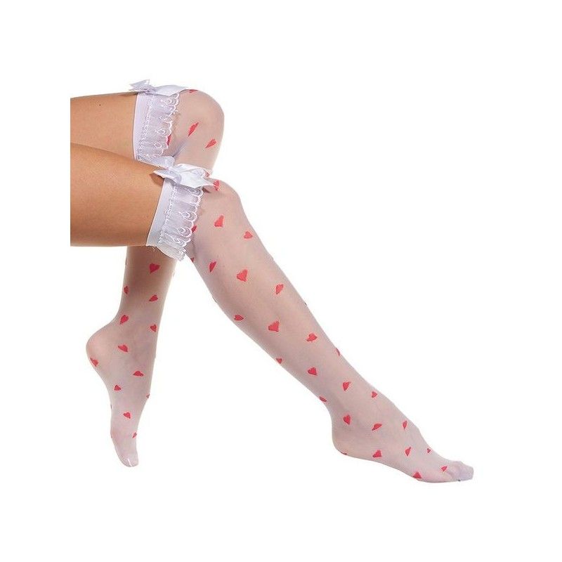 Producto: Medias Color: Blanco Tipo de corte: Sin corte( Hasta los pies) Tela: Transparente Detalles: Lazos Accesorios: Total piezas: 1 Tallas: Altura chica: 150 - 175 cm Composición: 35% Algodón - 65% Poliester Etiquetaje: Etiqueta estandar Embalaje: Bolsa plástico transparente Cuidados: Lavar a mano con agua fría. Utilizar jabón neutro. No utilizar lejía. Aclarar sin retorcer. Planchar sólo las partes no elásticas