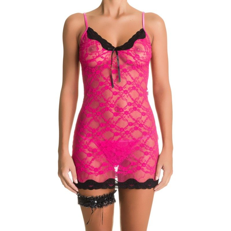Producto: Picardías Color: Rosa Varillas: Sin varillas Cierre trasero: Lazada o cordón Cierre delantero: Sin cierres Cuello: Abierto Copa: Sin copa Aros: Sin aros Tipo de corte: Medio (Hasta gluteos) Tirantes: Tirantes regulables Mangas: Sin mangas Tela: Encaje Detalles: Puntillas Accesorios: Tanga, Liga Total piezas: 3 Composición: 80% poliester 20% Elastano Etiquetaje: Etiqueta estandar Embalaje: Bolsa de tela con asa troquelada