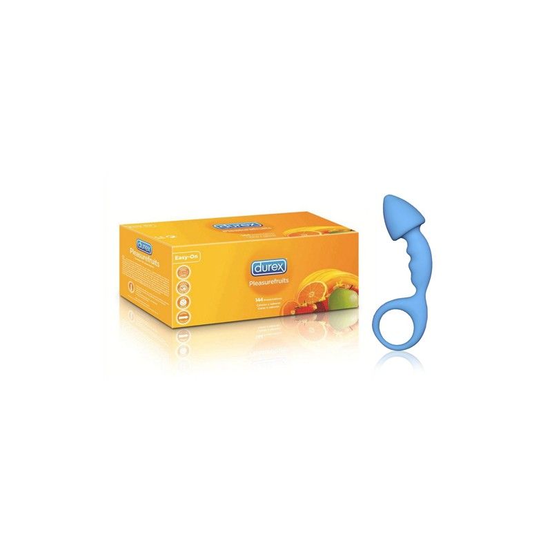 Caja gran formato: 144 unidades de preservativos DUREX PLEASURE FRUITS lubricados con aromas y sabores de frutas: fresa, plátano, naranja y manzana. Además tienen colores distintos.
