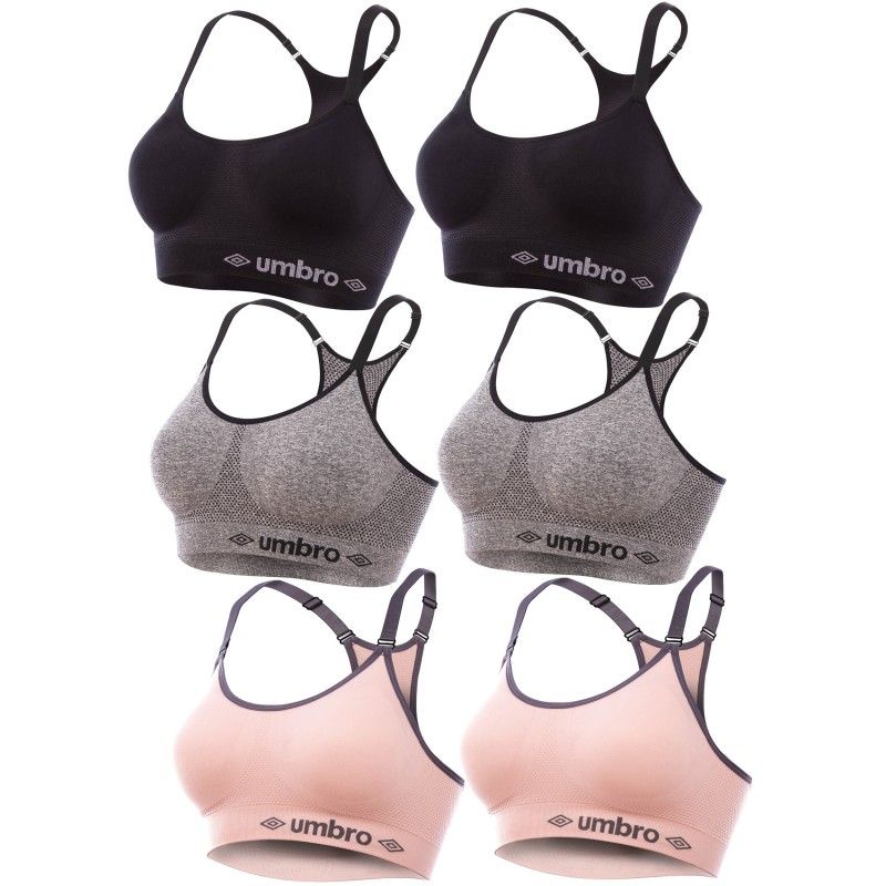 Set 6 juegos Sujetador deportivo femenino, negro/gris/rosa, sin costuras