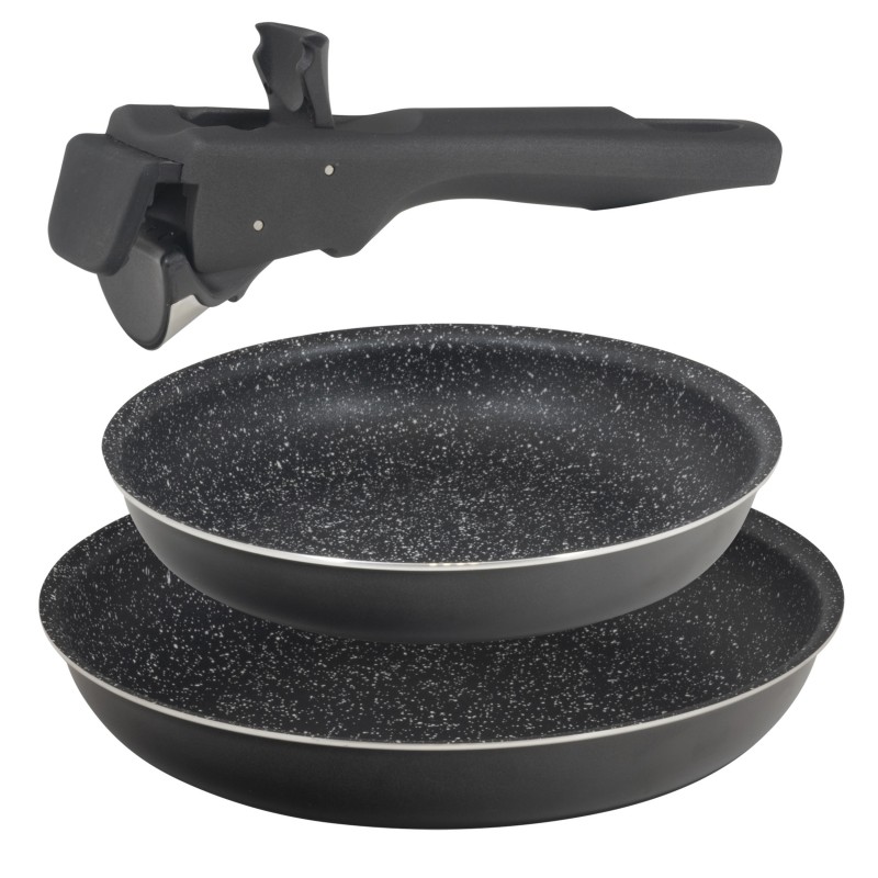 2 sartenes de Ø20 y Ø26 cms + 1 mango polivalente Click & Cook.