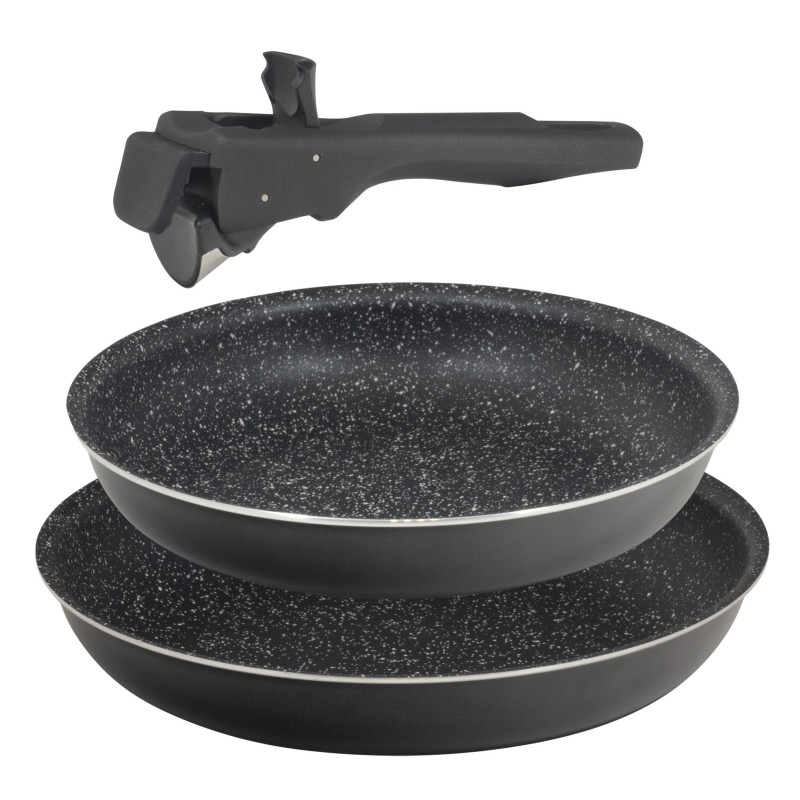 2 sartenes de Ø24 y Ø28 cms + 1 mango polivalente Click & Cook.